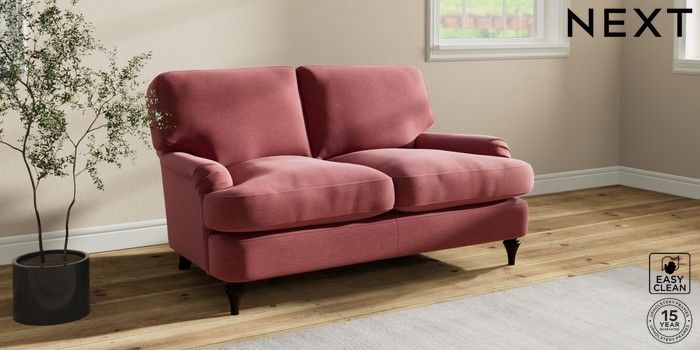 7.2.10 Sadie Deep Relaxed Sit 2 Seater Small Sofa Fine Chenille Easy Clean Mid Pink High Slim Turned - Dark | Made Click here to use our website with more accessibility support, for example screen readers