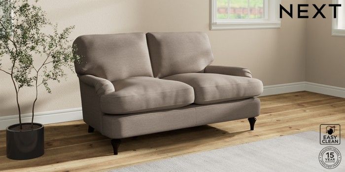 7.2.10 Sadie Deep Relaxed Sit 2 Seater Small Sofa Fine Chenille Easy Clean Mid Taupe Brown High Slim Turned - Dark | Made Click here to use our website with more accessibility support, for example screen readers