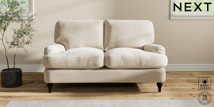 7.2.10 Sadie Deep Relaxed Sit 2 Seater Small Sofa Fine Chenille Easy Clean Oyster High Slim Turned - Dark | Made Click here to use our website with more accessibility support, for example screen readers