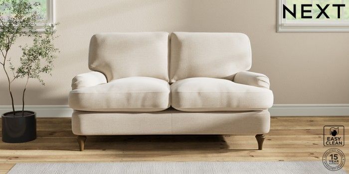 7.2.10 Sadie Deep Relaxed Sit 2 Seater Small Sofa Fine Chenille Easy Clean Oyster High Slim Turned - Mid | Made Click here to use our website with more accessibility support, for example screen readers