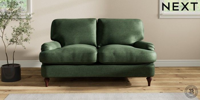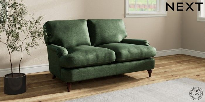 7.2.10 Sadie Deep Relaxed Sit 2 Seater Small Sofa Luxe Chenille Dark Green High Slim Turned - Dark Brown | Made Click here to use our website with more accessibility support, for example screen readers