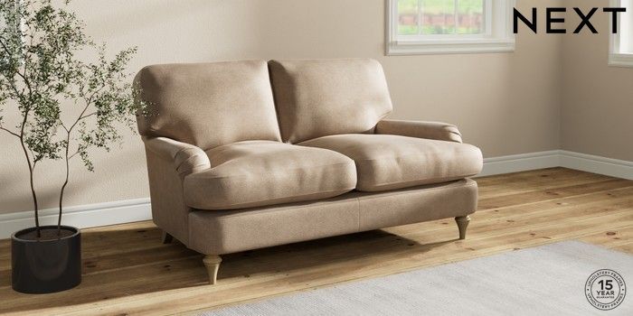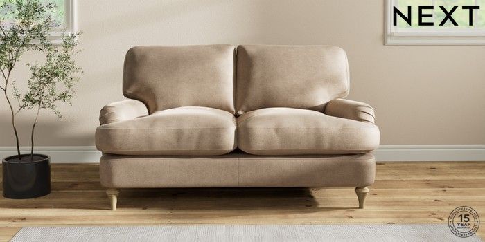 7.2.10 Sadie Deep Relaxed Sit 2 Seater Small Sofa Luxe Chenille Mid Camel Beige High Slim Turned - Light | Made Click here to use our website with more accessibility support, for example screen readers