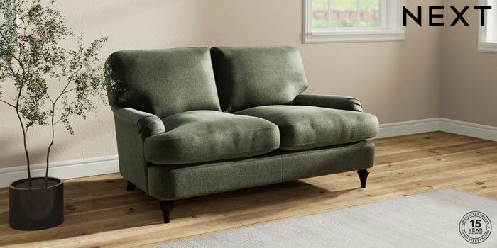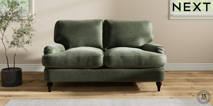7.2.10 Sadie Deep Relaxed Sit 2 Seater Small Sofa Luxe Chenille Mid Green High Slim Turned - Dark | Made Click here to use our website with more accessibility support, for example screen readers