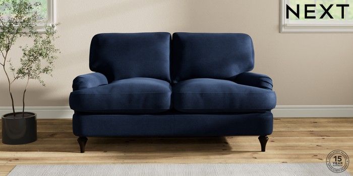 7.2.10 Sadie Deep Relaxed Sit 2 Seater Small Sofa Luxe Chenille Navy Blue High Slim Turned - Dark | Made Click here to use our website with more accessibility support, for example screen readers