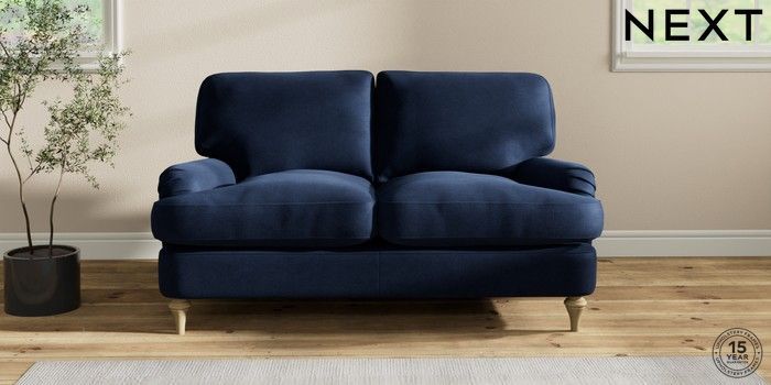 7.2.10 Sadie Deep Relaxed Sit 2 Seater Small Sofa Luxe Chenille Navy Blue High Slim Turned - Light | Made Click here to use our website with more accessibility support, for example screen readers