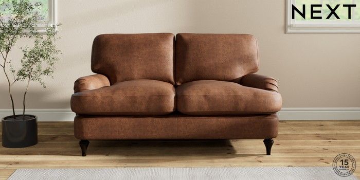 7.2.10 Sadie Deep Relaxed Sit 2 Seater Small Sofa Monza Faux Leather Easy Clean Chestnut Brown High Slim Turned - Dark | Made Click here to use our website with more accessibility support, for example screen readers