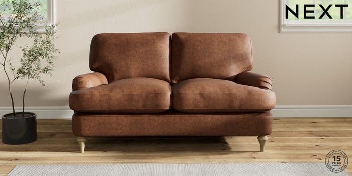 7.2.10 Sadie Deep Relaxed Sit 2 Seater Small Sofa Monza Faux Leather Easy Clean Chestnut Brown High Slim Turned - Light | Made Click here to use our website with more accessibility support, for example screen readers