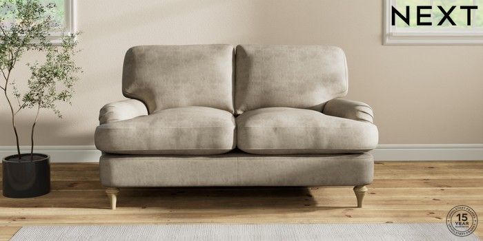 7.2.10 Sadie Deep Relaxed Sit 2 Seater Small Sofa Monza Faux Leather Easy Clean Mink Brown High Slim Turned - Light | Made Click here to use our website with more accessibility support, for example screen readers
