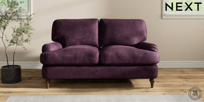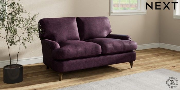 7.2.10 Sadie Deep Relaxed Sit 2 Seater Small Sofa Plush Chenille Dark Plum Purple High Slim Turned - Mid | Made Click here to use our website with more accessibility support, for example screen readers