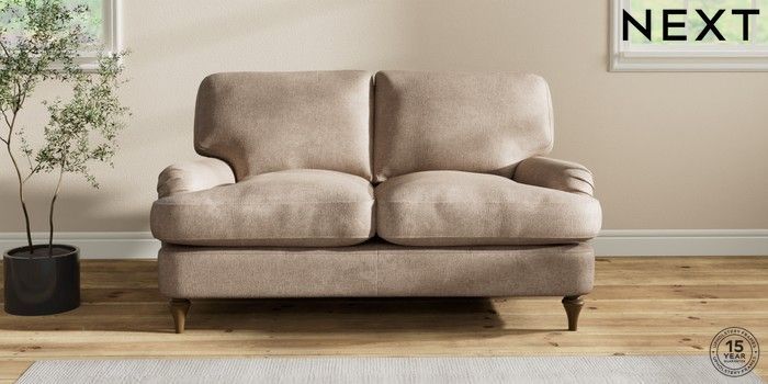 7.2.10 Sadie Deep Relaxed Sit 2 Seater Small Sofa Plush Chenille Mid Natural High Slim Turned - Mid | Made Click here to use our website with more accessibility support, for example screen readers