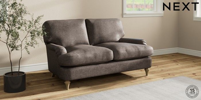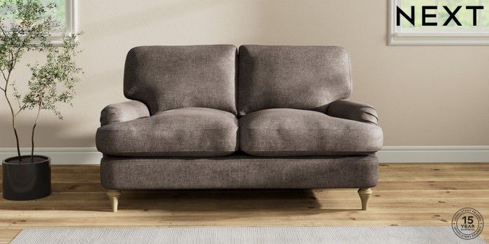 7.2.10 Sadie Deep Relaxed Sit 2 Seater Small Sofa Plush Chenille Mink Brown High Slim Turned - Light | Made Click here to use our website with more accessibility support, for example screen readers