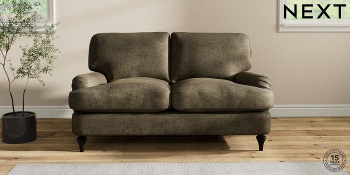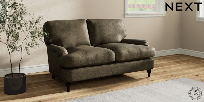 7.2.10 Sadie Deep Relaxed Sit 2 Seater Small Sofa Plush Chenille Moss Green High Slim Turned - Dark | Made Click here to use our website with more accessibility support, for example screen readers