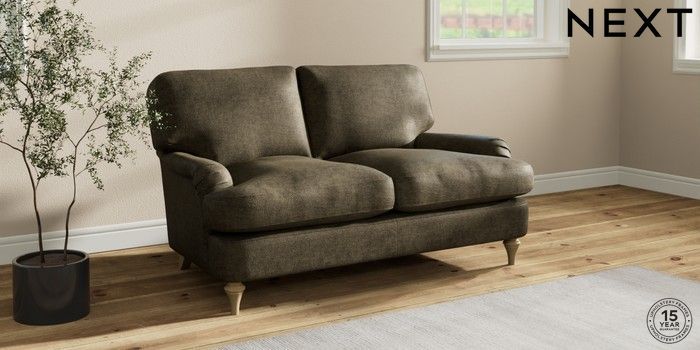 7.2.10 Sadie Deep Relaxed Sit 2 Seater Small Sofa Plush Chenille Moss Green High Slim Turned - Light | Made Click here to use our website with more accessibility support, for example screen readers