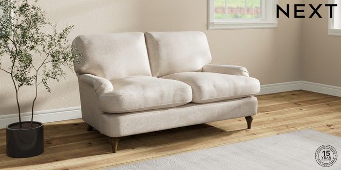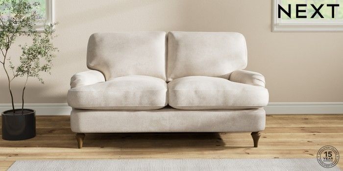 7.2.10 Sadie Deep Relaxed Sit 2 Seater Small Sofa Plush Chenille Oyster High Slim Turned - Mid | Made Click here to use our website with more accessibility support, for example screen readers