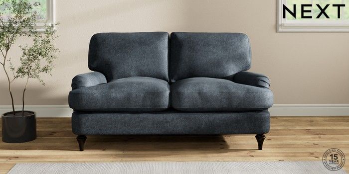 7.2.10 Sadie Deep Relaxed Sit 2 Seater Small Sofa Plush Chenille Slate Blue High Slim Turned - Dark | Made Click here to use our website with more accessibility support, for example screen readers