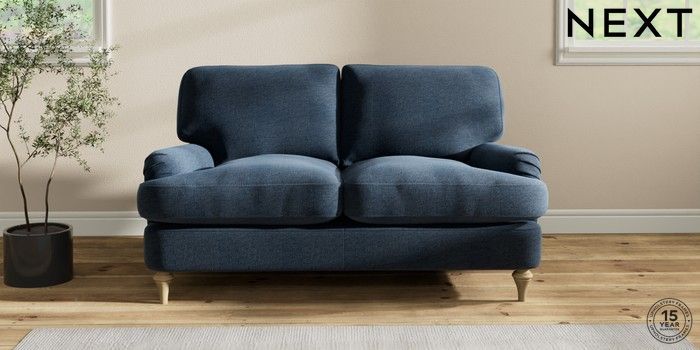 7.2.10 Sadie Deep Relaxed Sit 2 Seater Small Sofa Ripple Chenille Dark Blue High Slim Turned - Light | Made Click here to use our website with more accessibility support, for example screen readers