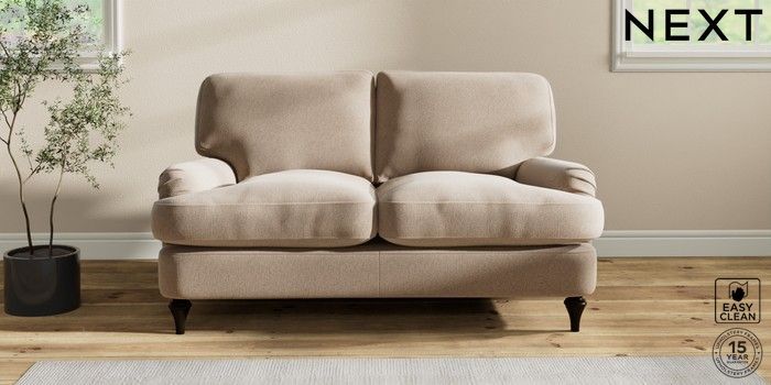 7.2.10 Sadie Deep Relaxed Sit 2 Seater Small Sofa Tweedy Blend Easy Clean Light Dove Natural High Slim Turned - Dark | Made Click here to use our website with more accessibility support, for example screen readers