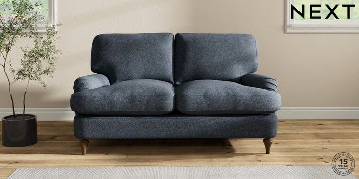 7.2.10 Sadie Deep Relaxed Sit 2 Seater Small Sofa Tweedy Chenille Navy Blue High Slim Turned - Mid | Made Click here to use our website with more accessibility support, for example screen readers