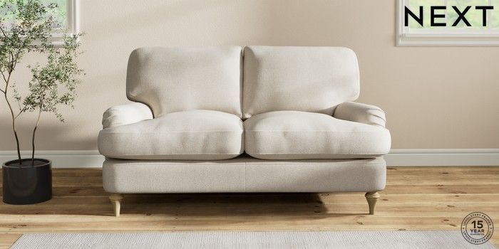 7.2.10 Sadie Deep Relaxed Sit 2 Seater Small Sofa Tweedy Chenille Oyster High Slim Turned - Light | Made Click here to use our website with more accessibility support, for example screen readers
