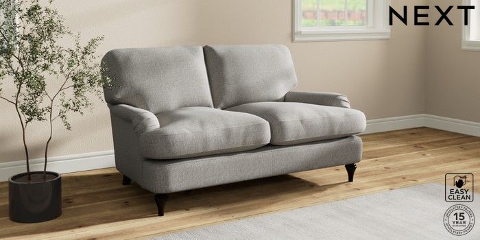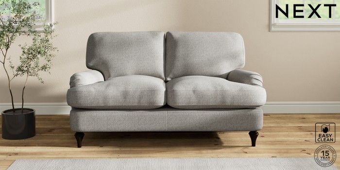7.2.10 Sadie Deep Relaxed Sit 2 Seater Small Sofa Woven Chenille Easy Clean Light Grey High Slim Turned - Dark | Made Click here to use our website with more accessibility support, for example screen readers