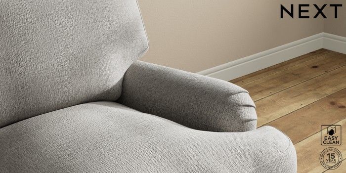 7.2.10 Sadie Deep Relaxed Sit 2 Seater Small Sofa Woven Chenille Easy Clean Light Grey High Slim Turned - Dark Brown | Made Click here to use our website with more accessibility support, for example screen readers