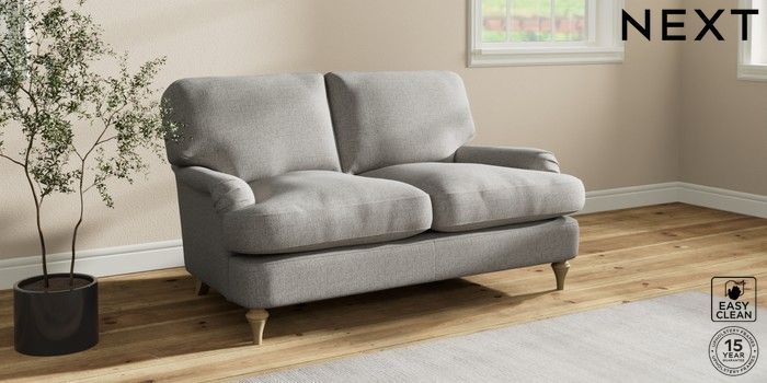 7.2.10 Sadie Deep Relaxed Sit 2 Seater Small Sofa Woven Chenille Easy Clean Light Grey High Slim Turned - Light | Made Click here to use our website with more accessibility support, for example screen readers