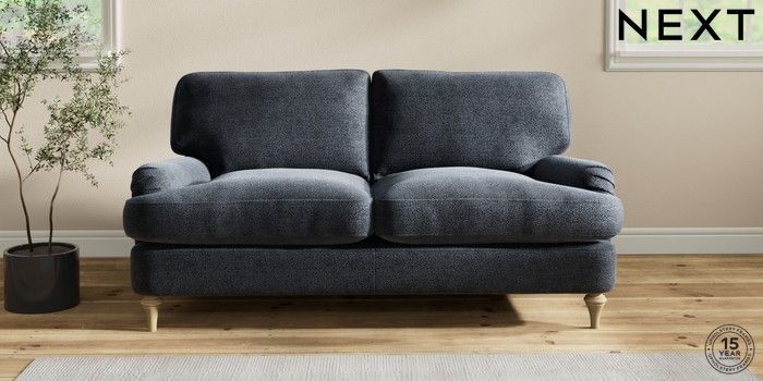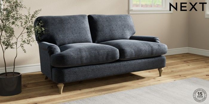 7.2.10 Sadie Deep Relaxed Sit 2 Seater Sofa Boucle Chenille Dark Slate Blue High Slim Turned - Light | Made Click here to use our website with more accessibility support, for example screen readers
