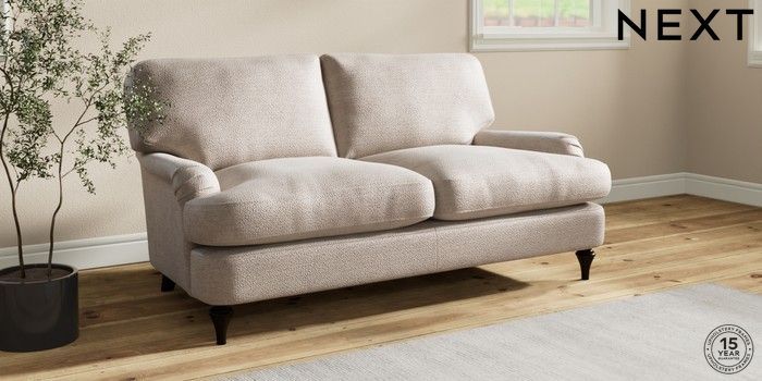 7.2.10 Sadie Deep Relaxed Sit 2 Seater Sofa Boucle Chenille Light Natural High Slim Turned - Dark | Made Click here to use our website with more accessibility support, for example screen readers