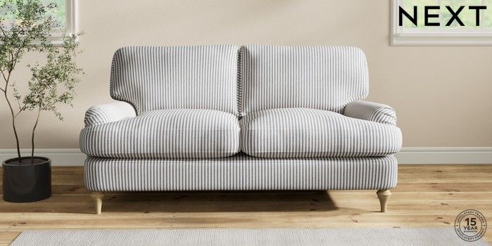 7.2.10 Sadie Deep Relaxed Sit 2 Seater Sofa Chenille Stripe Slate Blue High Slim Turned - Light | Made Click here to use our website with more accessibility support, for example screen readers