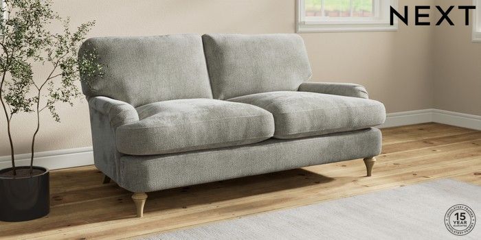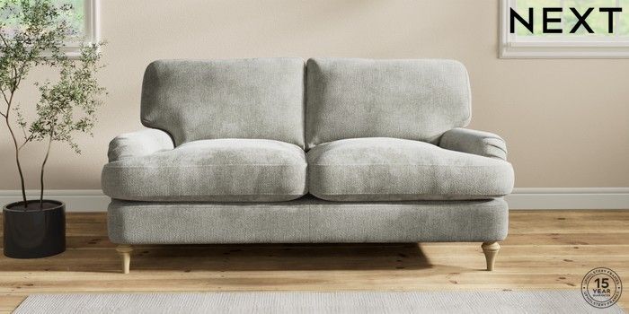 7.2.10 Sadie Deep Relaxed Sit 2 Seater Sofa Chunky Chenille Light Grey High Slim Turned - Light | Made Click here to use our website with more accessibility support, for example screen readers