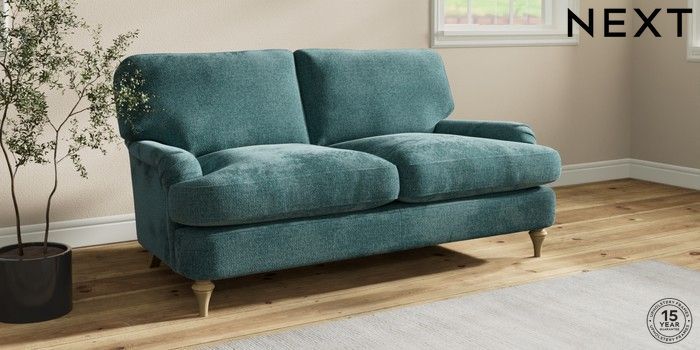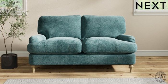 7.2.10 Sadie Deep Relaxed Sit 2 Seater Sofa Chunky Chenille Mid Teal Green High Slim Turned - Light | Made Click here to use our website with more accessibility support, for example screen readers
