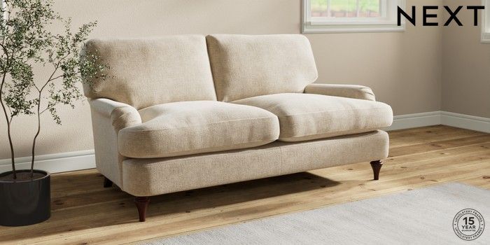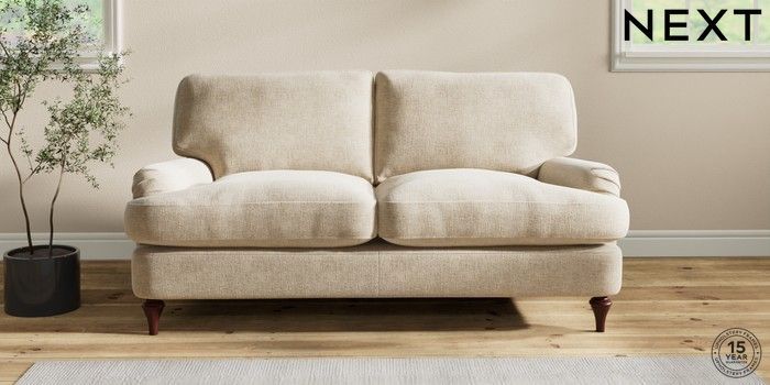7.2.10 Sadie Deep Relaxed Sit 2 Seater Sofa Chunky Weave Cream High Slim Turned - Dark Brown | Made Click here to use our website with more accessibility support, for example screen readers