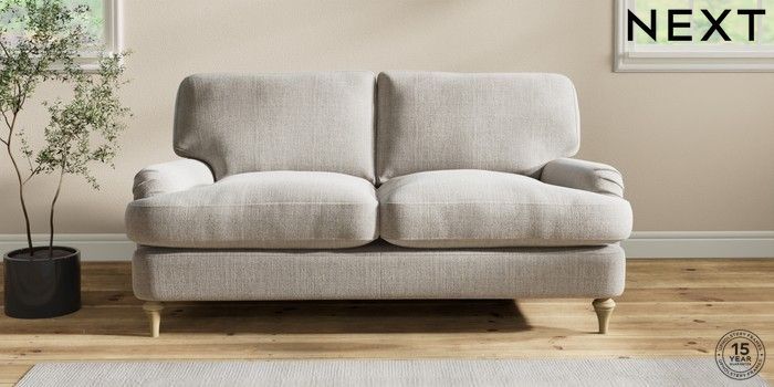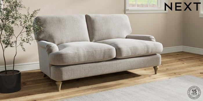 7.2.10 Sadie Deep Relaxed Sit 2 Seater Sofa Chunky Weave Dove Grey High Slim Turned - Light | Made Click here to use our website with more accessibility support, for example screen readers