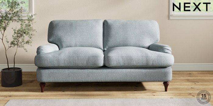 7.2.10 Sadie Deep Relaxed Sit 2 Seater Sofa Chunky Weave Mid Blue High Slim Turned - Dark Brown | Made Click here to use our website with more accessibility support, for example screen readers
