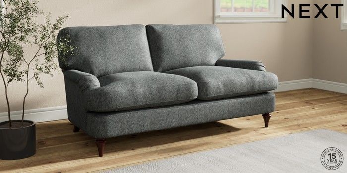 7.2.10 Sadie Deep Relaxed Sit 2 Seater Sofa Cotswold Chenille Dark Grey High Slim Turned - Dark Brown | Made Click here to use our website with more accessibility support, for example screen readers
