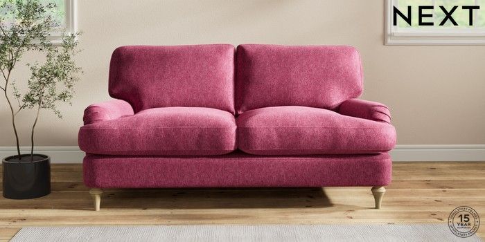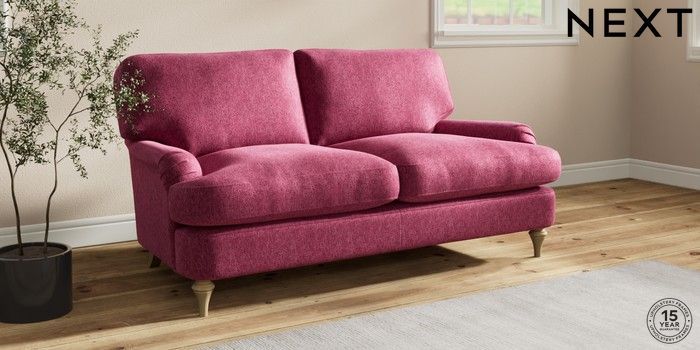7.2.10 Sadie Deep Relaxed Sit 2 Seater Sofa Cotswold Chenille Dark Raspberry Pink High Slim Turned - Light | Made Click here to use our website with more accessibility support, for example screen readers
