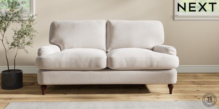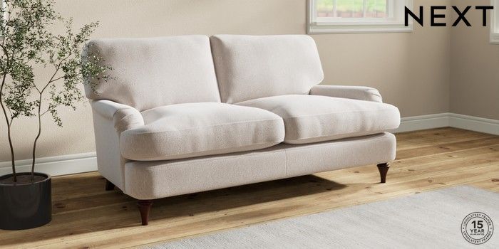 7.2.10 Sadie Deep Relaxed Sit 2 Seater Sofa Cotswold Chenille Oyster High Slim Turned - Dark Brown | Made Click here to use our website with more accessibility support, for example screen readers