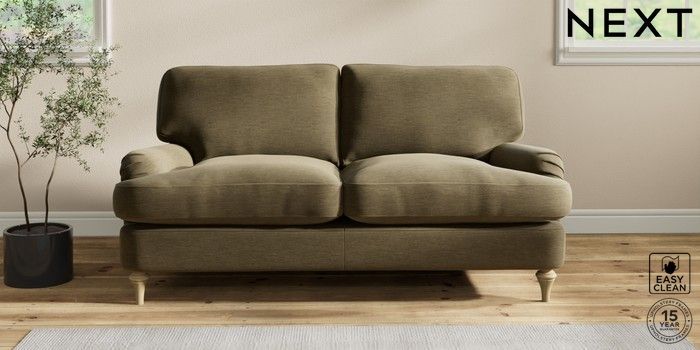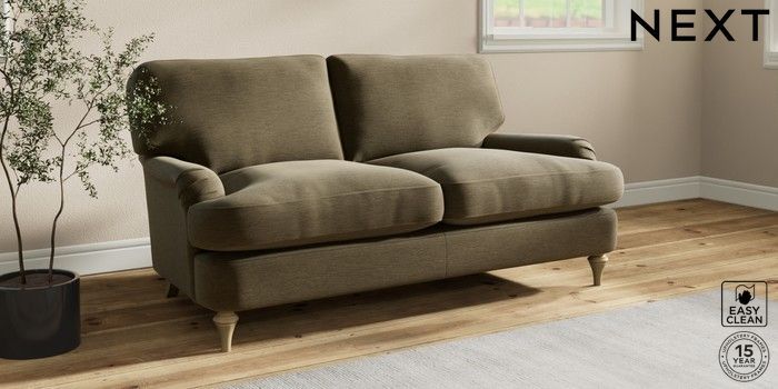 7.2.10 Sadie Deep Relaxed Sit 2 Seater Sofa Fine Chenille Easy Clean Dark Moss Green High Slim Turned - Light | Made Click here to use our website with more accessibility support, for example screen readers