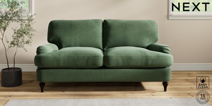 7.2.10 Sadie Deep Relaxed Sit 2 Seater Sofa Fine Chenille Easy Clean Mid Khaki Green High Slim Turned - Dark | Made Click here to use our website with more accessibility support, for example screen readers