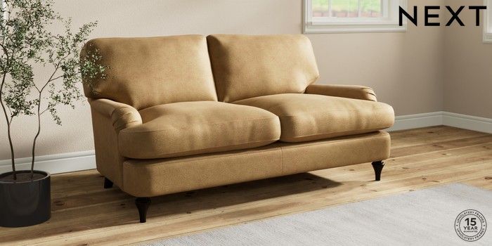 7.2.10 Sadie Deep Relaxed Sit 2 Seater Sofa Luxe Chenille Honey Yellow High Slim Turned - Dark | Made Click here to use our website with more accessibility support, for example screen readers