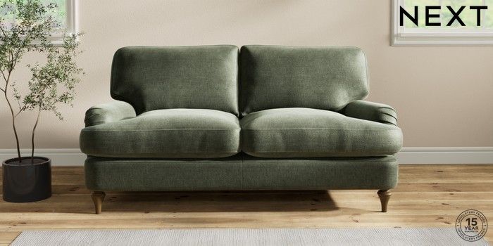 7.2.10 Sadie Deep Relaxed Sit 2 Seater Sofa Luxe Chenille Mid Green High Slim Turned - Mid | Made Click here to use our website with more accessibility support, for example screen readers