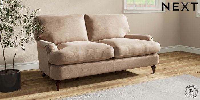 7.2.10 Sadie Deep Relaxed Sit 2 Seater Sofa Luxe Chenille Mid Natural High Slim Turned - Dark Brown | Made Click here to use our website with more accessibility support, for example screen readers