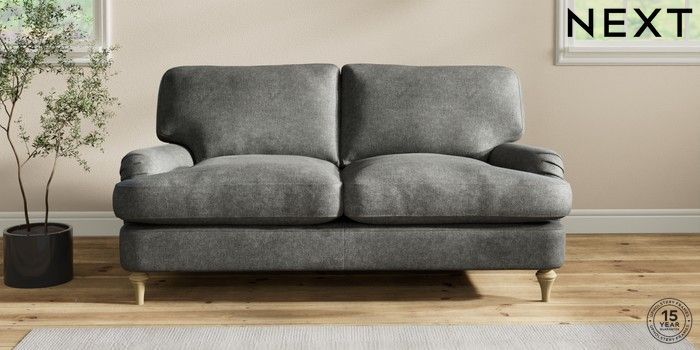 7.2.10 Sadie Deep Relaxed Sit 2 Seater Sofa Plush Chenille Dark Grey High Slim Turned - Light | Made Click here to use our website with more accessibility support, for example screen readers