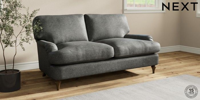 7.2.10 Sadie Deep Relaxed Sit 2 Seater Sofa Plush Chenille Dark Grey High Slim Turned - Mid | Made Click here to use our website with more accessibility support, for example screen readers
