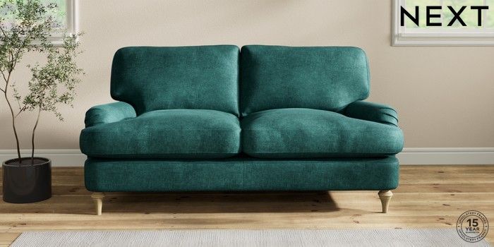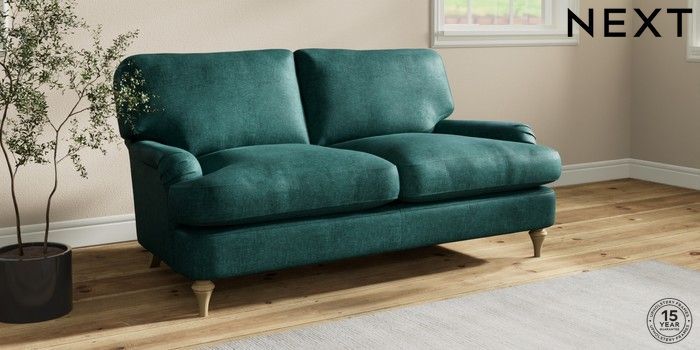 7.2.10 Sadie Deep Relaxed Sit 2 Seater Sofa Plush Chenille Dark Teal Green High Slim Turned - Light | Made Click here to use our website with more accessibility support, for example screen readers