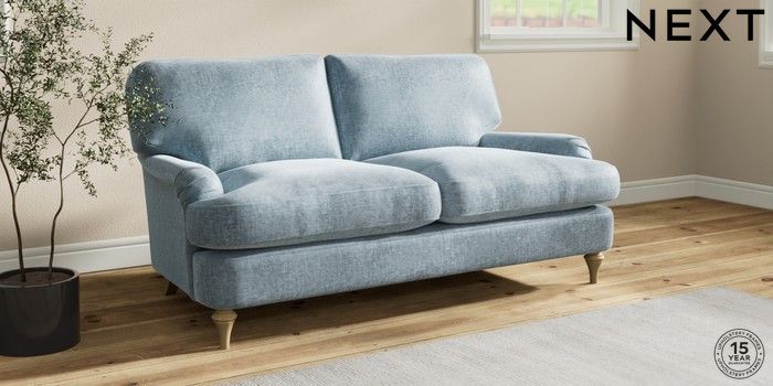 7.2.10 Sadie Deep Relaxed Sit 2 Seater Sofa Plush Chenille Light Blue High Slim Turned - Light | Made Click here to use our website with more accessibility support, for example screen readers
