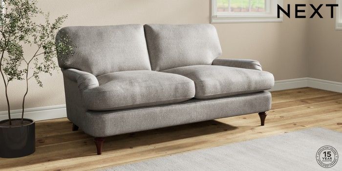 7.2.10 Sadie Deep Relaxed Sit 2 Seater Sofa Plush Chenille Light Grey High Slim Turned - Dark Brown | Made Click here to use our website with more accessibility support, for example screen readers