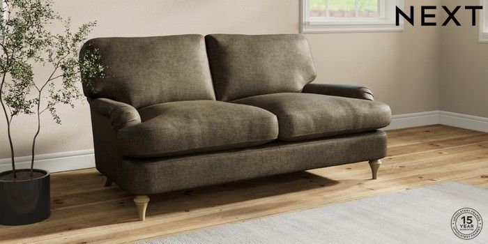 7.2.10 Sadie Deep Relaxed Sit 2 Seater Sofa Plush Chenille Moss Green High Slim Turned - Light | Made Click here to use our website with more accessibility support, for example screen readers