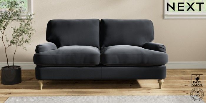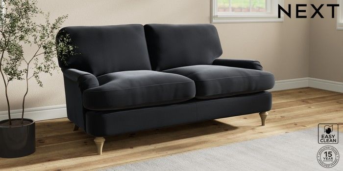 7.2.10 Sadie Deep Relaxed Sit 2 Seater Sofa Plush Velvet Easy Clean Charcoal Grey High Slim Turned - Light | Made Click here to use our website with more accessibility support, for example screen readers