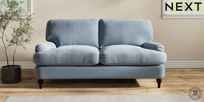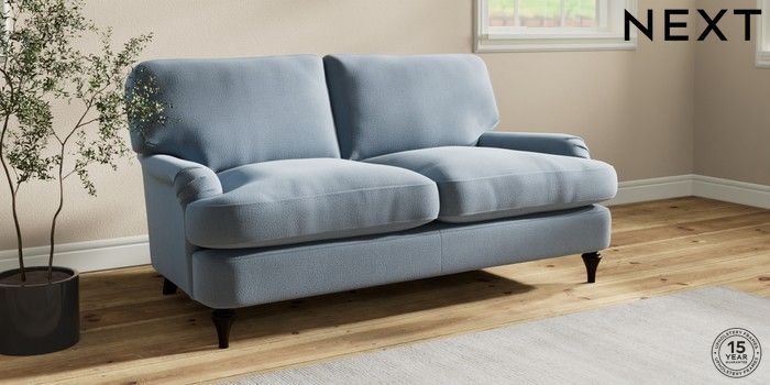 7.2.10 Sadie Deep Relaxed Sit 2 Seater Sofa Relaxed Linen Look Mid Blue High Slim Turned - Dark | Made Click here to use our website with more accessibility support, for example screen readers